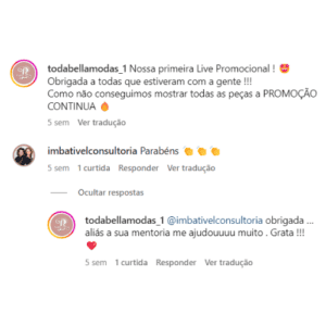 Apesar de não conseguir acompanhar todas as aulas ao vivo, ainda peguei as aulas gravadas e consegui sanar algumas dúvidas. Acredito que as dicas de vocês serão indispensáveis para ampliar as nossas vendas e irmos aprendendo a cada dia. Obrigada 😊 Ah, e sem dúvidas, das aulas que consegui acompanhar pra mim foi como uma terapia kkkk. Algumas coisas acabam clareando as nossas ideias! 😃”
